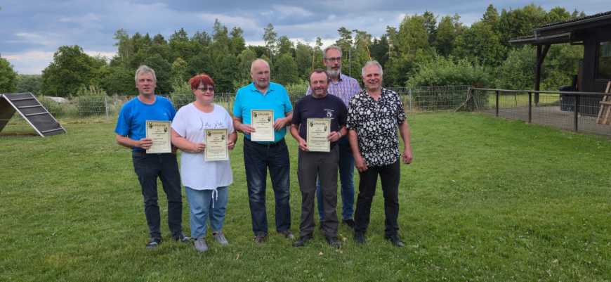 Als die Fährten ausgearbeitet waren, die auch alle Hunde bestanden haben, ging es zurück ins Vereinsheim. Nach einer kurzen Frühstückspause und der Abnahme eines Sachkundenachweißes ging es auf dem